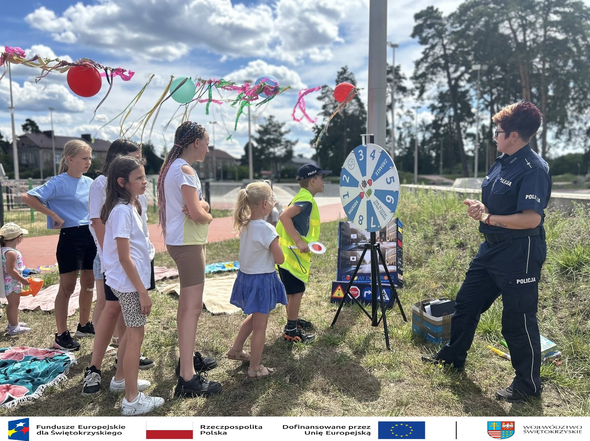 Podczas wydarzenia odbyła się ciekawa i pouczająca pogadanka prowadzona przez funkcjonariuszkę KPP Panią Agnieszkę Boszczyk-Górnicką, która opowiadała o zasadach bezpieczeństwa nad wodą – zarówno dla dzieci, jak i dorosłych.